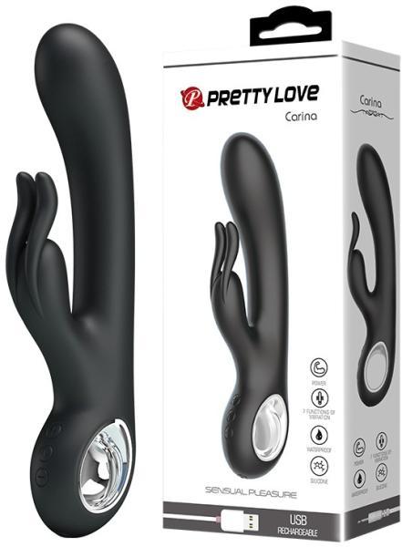 Pretty Love Carina csiklóágas vibrátor (fekete) Viszonylag kis méretű, csikló izgató ággal szerelt vibrátor, két darab motorral a jobb stimuláció érdekében. Az egyik motor természetesen a fő ágban, a másik a nyuszifülekkel díszített külső ágban kapott helyet. Mindkettő nagyon csendes, és ha kell, kellően erős. Talán a fő ágban lévő mélyebb tónusú rezgésekkel do