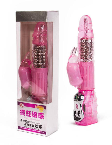 Termék részletekRugalmas, zselés anyagból készített, 12 rezgési és 4 forgási funkcióval ellátott, duplamotoros, nyuszi alakú csiklóizgatóval kiegészített vibrátor, amely a g-pont izgatására is használható. A készülékben lévő gyöngyök a tengely körüli forgással megegyező irányban mozognak, így a hüvelyben lévő idegvégződéseket stimulálják. A forgási és a vibráció sebess