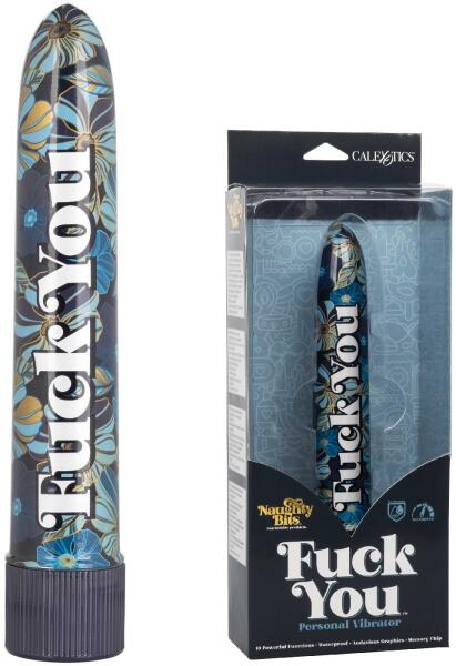 Fuck You rúdvibrátor-10func. 10féle vibro mód közül választhatsz. Kemény műanyag. Szép minták, szép felirat:) Impozáns csomagolás. Vízálló. Teljes hossza:19,5cm. Átmérő:3-3,3cm.