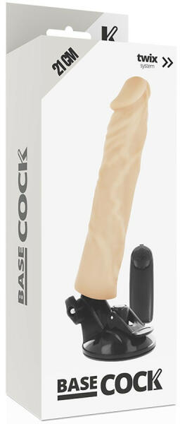 Basecock tapadótalpas vibrátor, vezetékes távirányítóval (világos bőrszín - 21 cm) Realisztikus vonalvezetésű vibrátor, puha, bőrbarát gumiból készült burkolattal. Váza merev, leszámítva a felső negyedét, a makkrész környékét, ami szintén jó tartású, de hajlékony. A vibrációs motor a törzs középső részében kapott helyet, közepes-magas tónusú, csendes rezg