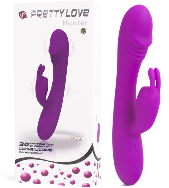 Pretty Love Hunter akkus nyuszis vibrátor 100% szilikonból készült Pretty Love vibrátor csiklóizgató karral, dupla motorral, mely 30 különböző módban kényeztet, 4 különböző ponton, így maximális kéjben részesít. Gyenge rezgéstől a vad lüktetésig váltogathatod a programokat egy nyomógomb segítségével, mely a sötétben világít. Igazi luxus kényeztető magányos hö