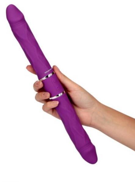 Cupid Arrow -kétvégű vibrátor, akkus, távirányítós. Szilikon kétvégű vibrátor. Távirányítóval vagy a rajta lévő gombokkal szabályozhat vibráció. Akkus(USB töltő zsinór a csomagban). Teljes hossza:35cm. Átmérő:3,3cm.