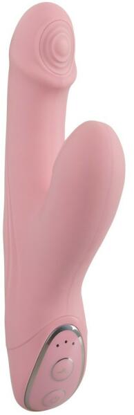 | 12590 | Rugalmas, zselés anyagból készített, 3 rezgési és 3 rotáló funkcióval ellátott, duplamotoros, nyuszi alakú csiklóizgatóval kiegészített vibrátor, amely a g-pont izgatására is használható. A készülékben lévő gyöngyök a tengely körüli forgással megegyező irányban mozognak, így a hüvelyben lévő idegvégződéseket stimulálják. A forgási és a vibráci