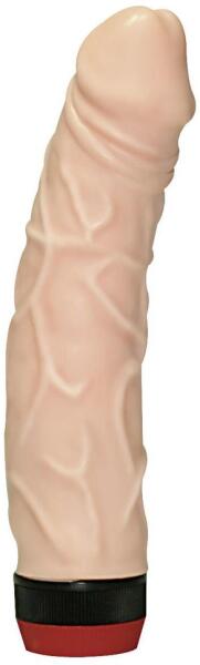 A szolid, midig tettre kész szerető! Érzéki péniszformába bujtatott vibrációs kényeztető, formás makkal, enyhén hajlított kialakítással, stimuláló erezett felszínnel. A vibráció erőssége könnyedén, fokozatmentesen állítható. A kényeztető teljes hossza 18cm, átmérője 3,5-4,5cm. Anyaga: PVC (EU-rendeletnek megfelelő, phthalát-mentes). Natúr színben. A termék 2db