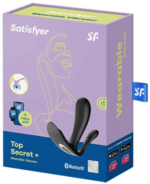Satisfyer Top Secret+ hárommotoros vibrátor (fekete) (APP-os) Nagyon sokrétűen használható, prémium minőségű, okoseszközzel, azaz applikációval is vezérlehető vibrációs kényeztető hölgyek részére. Sokoldalúságát jól jelzi hogy három motor is helyet kapott a játékszerben, de erről majd késöbb... Az eszköz három fő részből áll össze. A hüvelyi behelyezésre sz