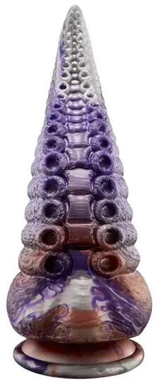Ez a csodálatos csáp az erotikus dizájn igazi remeke. 22,5 cm-es teljes hosszával, amelyből 19,5 cm-es behelyezésre szánt, mély és intenzív élvezetet nyújt. Egyedülálló formája a 2,5 cm széles csúcsról fokozatosan tágul a legszélesebb részen lenyűgöző 26,4 cm-es kerületre. A kiemelkedésekkel és tapadókorongokkal ellátott texturált felület testének minden centiméte