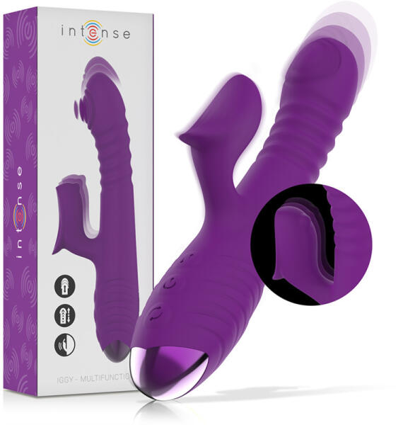 INTENZÍV - IGGY MULTIFUNKCIÓS VIBRÁTOR LÖKŐ MOZGÁSÚ KLITORISZ STIMULÁTORRAL LILA A INTENSE márka'az IGGY multifunkciós vibrátor egy élvonalbeli szexuális játék, amely az élvezet új magasságokba emeli Önt. Ez az újratölthető és fel≤ vibrátor egy technológiai csoda, amelyet úgy terveztek, hogy intenzíven és kielégítően stimulálja a legérzékenyebb területeket. Az