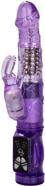 Kiváló minőségű anyagból készített, 7 vibrációs és 3 sebességi fokozattal rendelkező, nyuszi formájú csiklóizgatóval kiegészített, a g-pont stimulálására is alkalmas rugalmas vibrátor. Tisztítása: minden használat előtt és használat után langyos szappanos vízzel és segédeszköz tisztítóval kell lemosni. Víz- és szilikonbázisú síkosítóval is kompatibilis, e