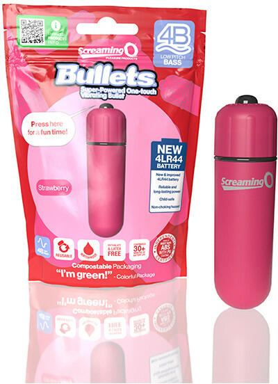 With their compact shape; powerful 4B motor creating bass style vibrations; new 4LR44 longer lasting batteries; and a remarkably smooth, silky feel, the Screaming O 4B Bullets provide deep stimulation for better, more satisfying sex! These super-powered one-touch vibrating bullets are waterproof, available in four colors, and are packaged in compostable, eco-friendly materials. Deep, rumbling bull