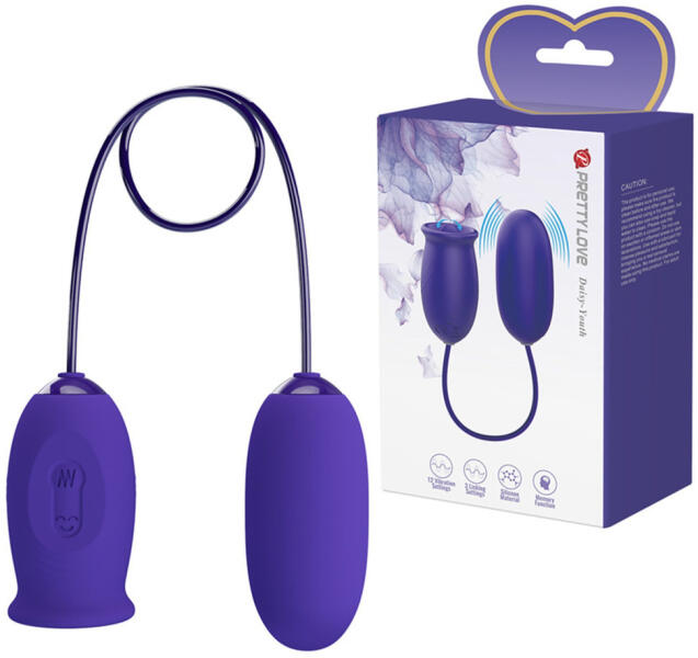 Pretty Love Daisy Youth vibrációs tojás, nyelvecskés csiklóizgatóval, felxibilis száron Különleges kivitelű, sokrétű izgató eszköz, mely két fő részből áll össze. A tojást formázó vége behelyezésre szolgál és vibrációval kényezteti a kedves felhasználót. Ehhez a egy hosszú, flexibilis száron keresztül kapcsolódik, egy elsősorban a csiklóizgatására szolgáló