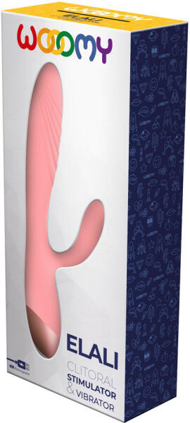 Wooomy Elali klitoriszágas, hajlítható vibrátor Egy újabb csiklóággal rendelkező vibrátor, ami abban különleges hogy elkeskenyedő dörzsrészénél igen hajlékony, sőt némileg meg is tartja a beállított formát. A rugalmasság a fő ág behelyezése után kint maradó csiklóágra is érvénye, ez az ág a külső izgalmi pontok izgatását végzi. A jellemzően bőrbarát sziliko