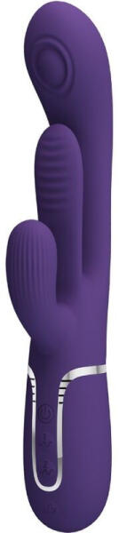 PRETTY LOVE - SHANIA TRIPLA NYÚL VIBRÁTOR MULTIFUNKCIÓS LILA PRETTY LOVE BW-500041-2 Ez az egyedülállóan texturált nyúlvibrátor észbontó belső és külső érzéseket kínál 7 dobbantási és rezgési beállítással. Ez a játék kiváló minőségű bársonyos szilikonból készült, amely gyönyörű, szexi, selymes tapintást biztosít, hogy egész éjszaka teljesen elégedett leg