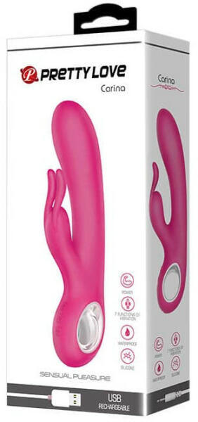 Pretty Love Carina tölthető csiklóizgatós vibrátor - rózsaszín 100% szilikonból készült Pretty Love vibrátor a Carina csiklóizgató karral, dupla motorral tölthető változatban. Gyenge rezgéstől a vad lüktetésig váltogathatod a 7 programot egy nyomógomb segítségével, mely a sötétben világít. Igazi luxus kényeztető magányos hölgyeknek vagy párkapcsolatban az élvezet