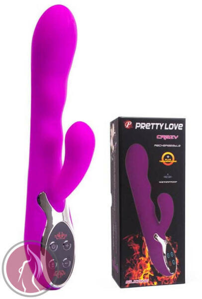 Pretty Love Crazy - melegedő vibrátor Bőrbarát szilikonból készült csiklóizgatós vibrátor hullámos felszínnel és rugalmas csiklóizgató karral. A dupla motor intenzíven stimulálja a hüvelyt és a klitoriszt, könnyedén a csúcsra juttatva ezzel használóját. Minőségi anyagának és 10 vibrációs programjának köszönhetően a luxus vibrátorok kategóriájába tartozik. Kü