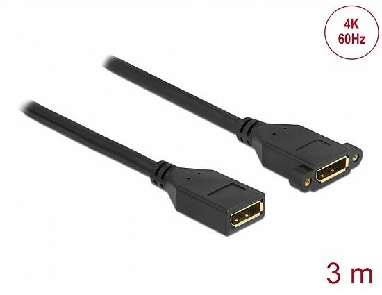 Ez a Delock kábel DisplayPort-s csatlakozások kibővítésére, illetve különféle eszközök csatlakoztatására használható. A csatlakozóhüvely két csavar segítségével egyebek között megfelelő nyílással rendelkező nyíláskerethez, kábelvezetékhez vagy házhoz rögzíthető. Ezzel a módszerrel DisplayPort-csatlakozót telepíthet egy könnyen hozzáférhető helyre. Gyártó