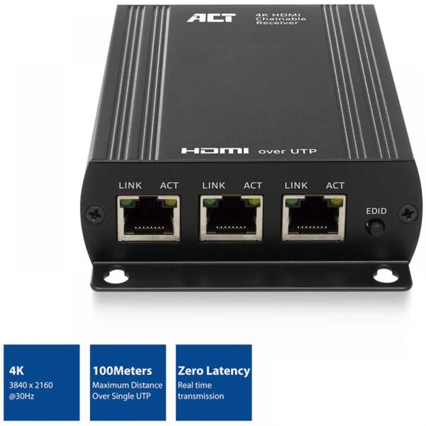 Kijelző felbontás (pixel):4K 30Hz, kimeneti csatlakozó:RJ45, Bemeneti csatlakozó:HDMI, Audio támogatás:Van, Adattovábbító médium:Over IP, LAN kábel szabvány:Cat5e/6, Maximális hatótávolság (m):150, Vezeték nélküli jeltovábbítás:Van, USB port:Van,