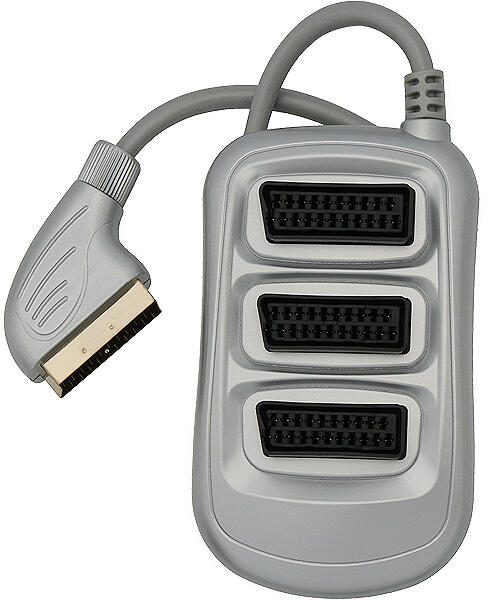 SCART csatlakozóval ellátott elosztó kábellel és három SCART aljzattal. - 1 x SCART dugó kábellel- Aljzat: 3 x SCART- Változat: DIGITÁLIS