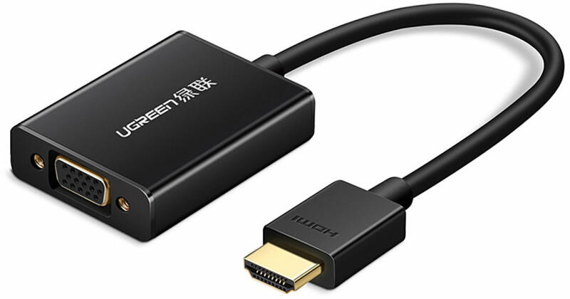 Ugreen kábel adapter kábel HDMI (férfi) - VGA (női) fekete (MM102) Ugreen egyirányú adapter, amely a HDMI-portról érkező digitális jelet a VGA-portra analógra alakítja át. Lehetővé teszi például egy VGA-csatlakozóval rendelkező monitor vagy projektor csatlakoztatását egy HDMI-csatlakozóval rendelkező számítógéphez. A termék további tápellátással rendelkezik a Micro