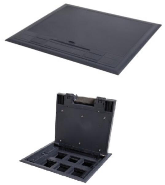KANLUX BIURO+ 04-0011-100 Műanyag padlódoboz 6xM45, 225x245mm, fekete (28300) Műszaki adatok: Névleges feszültség: 250V/AC Névleges frekvencia: 50Hz Névleges áram: 16A Modulok száma: 12 Beszerelés helye: szerelés: padlóba süllyesztett IP védettség: IP20 Áramütés elleni védelmi osztály: II Méret: 110 x 225 x 245 mm Súly: 2,1 kg Szín: antracit