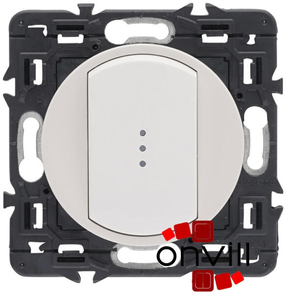 Céliane - egypólusú (101) kapcsoló jelzőfénnyel A csomag tartalma: Céliane csavarozható rögzítőperem Céliane mechanizmus Céliane burkolat Céliane jelzőfény A termékkép az összeszerelt szerelvényt ábrázolja, a termékeket részekre csomagolva külön cikkszámon számlázzuk és szállítjuk (szerelvény + burkolat + led) Egypólusú kapcsoló 10 AX – 230 V~ Rugós vezetékb