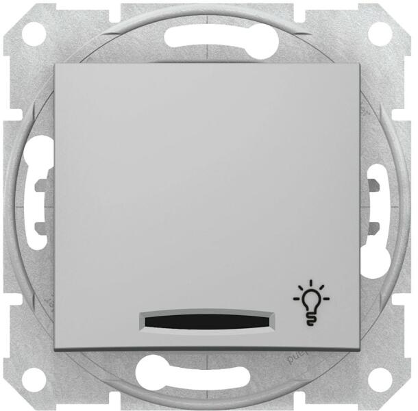 SEDNA Egypólusú nyomó, kék jelzőfénnyel, lámpajellel, rugós bekötés, 10A, alumínium, keret nélkül Névleges áram (In)=10A Névleges feszültség (Un)=250V-ig Maximális teljesítmény (P)=2300W Védettség:IP20 Áramköri csatlakozók: csavar nélküli- rugós típusok Csatlakoztatható vezetéktípusok: merev és hajlékony egyaránt Vezetékcsupszítási hossz:13mm A látható műa