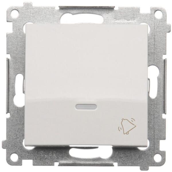 Nyomógombos kapcsoló "csengő" LED orientációs háttérvilágítással (modul) 10AX 250V, gyorscsatlakozó, fehér színű Specifikáció: Sorozat: Simon 54 prémium Termék neve: Kapcsológomb "csengő" LED háttérvilágítással Színe: 1: Fehér Típus: modul Maximális áram: 10 A Feszültség: 250 V AC A csatlakozók típusa IP-védelem: IP20 / IP44 Használjon DU kerettömítést az IP4