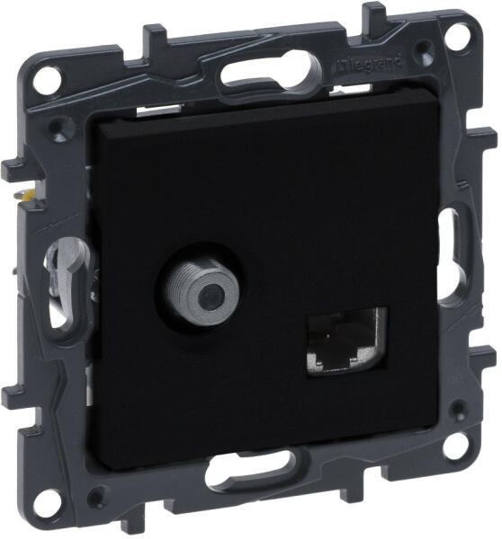 Legrand 863577 Niloé Step "F" típusú TV aljzat + RJ45 Cat. 6 UTP aljzat, fekete