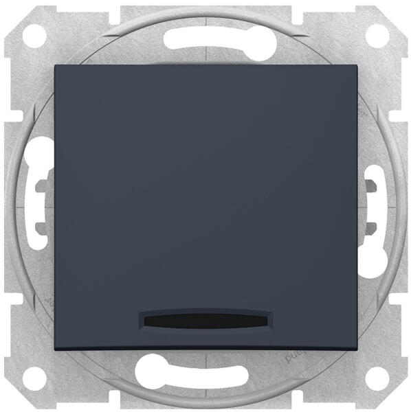 SEDNA Keresztkapcsoló, kék jelzőfénnyel, 10AX, grafit, keret nélkül Névleges áram (In)=10A Névleges feszültség (Un)=250V-ig Maximális teljesítmény (P)=2300W Védettség:IP20 Áramköri csatlakozók: csavar nélküli- rugós típusok Csatlakoztatható vezetéktípusok: merev és hajlékony egyaránt Vezetékcsupszítási hossz:13mm A látható műanyagalkatrészek anyaga: termoplaszti