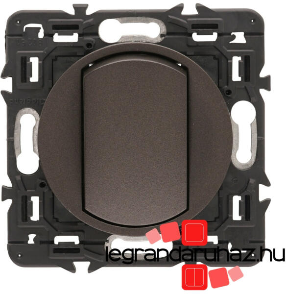 Céliane - egypólusú (101) kapcsoló A csomag tartalma: Céliane körmös rögzítőperem Céliane mechanizmus Céliane burkolat A termékkép az összeszerelt szerelvényt ábrázolja, a termékeket részekre csomagolva külön cikkszámon számlázzuk és szállítjuk (rögzítőperem + szerelvény + burkolat) Egypólusú kapcsoló 10 AX – 230 V~ Rugós vezetékbekötéssel Grafit