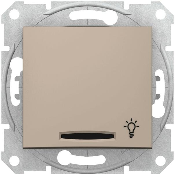 SEDNA Egypólusú nyomó, kék jelzőfénnyel, lámpajellel, rugós bekötés, 10A, titánium, keret nélkül Névleges áram (In)=10A Névleges feszültség (Un)=250V-ig Maximális teljesítmény (P)=2300W Védettség:IP20 Áramköri csatlakozók: csavar nélküli- rugós típusok Csatlakoztatható vezetéktípusok: merev és hajlékony egyaránt Vezetékcsupszítási hossz:13mm A látható műan