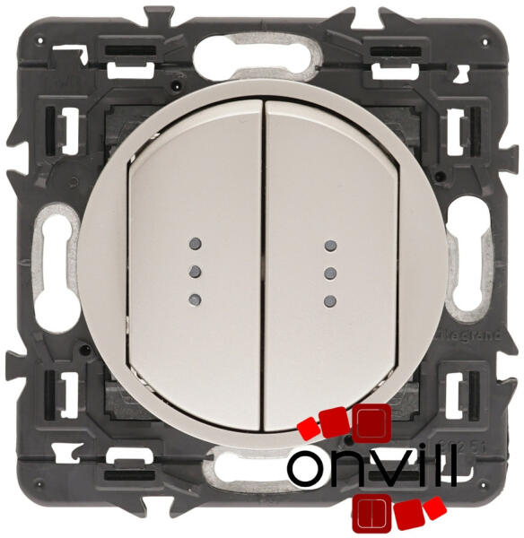 Céliane - kettős váltóérintkezős (106) nyomó jelzőfénnyel A csomag tartalma: Céliane csavarozható rögzítőperem Céliane mechanizmus Céliane burkolat Céliane jelzőfény A termékkép az összeszerelt szerelvényt ábrázolja, a termékeket részekre csomagolva külön cikkszámon számlázzuk és szállítjuk (szerelvény + burkolat + led) Kettős egypólusú nyomó 10 AX – 230 V