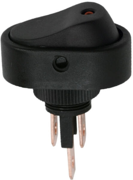 Billenő kapcsoló 1 áramkör 20 A - 12 V DC OFF - ON piros LED-del Beépíthető fekete billenőkapcsoló leddel. Széles körben használt, ideális lehet autóban, elektromos eszközök kezelőpanelján. A visszajelző lednek köszönhetően könnyen megállapítható a kapcsoló státusza. 20 A / 12 V DC ON - OFF Piros LED-del Kapcsoló típusa:SPSTÁramerősség:20 A / 12 V DCBeépítési m