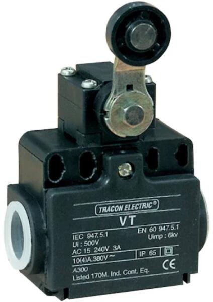 TRACON Helyzetkapcsoló, lengőkar-görgö (VT118) Műszaki adatok: 1×NO+1×NC 6A/230V AC 28 mm IP65