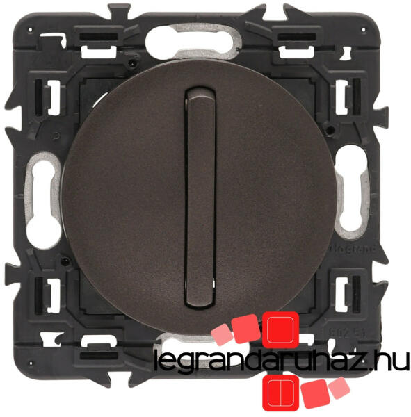 Céliane - váltókapcsoló (106) A csomag tartalma: Céliane hosszított 37mm-es körmös rögzítőperem Céliane mechanizmus Céliane burkolat A termékkép az összeszerelt szerelvényt ábrázolja, a termékeket részekre csomagolva külön cikkszámon számlázzuk és szállítjuk (rögzítőperem + szerelvény + burkolat) Váltókapcsoló 10 AX – 230 V~ Rugós vezetékbekötéssel Grafit