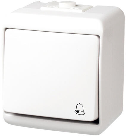A nyomókapcsoló ideális kültéri használatra az IP 44 védelem által. A fehér színű nyomókapcsolón csengõ jelzés található.