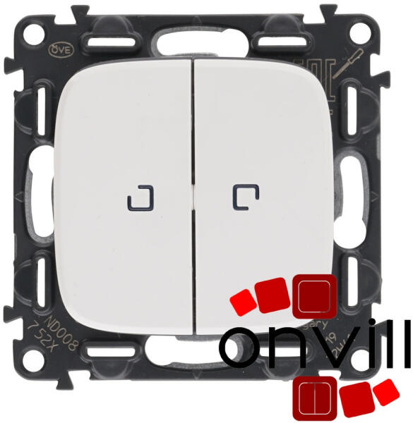 Valena Allure - dupla váltó (108-as) kapcsoló burkolattal Valena In'Matic szerelvény műanyag borítású fém süllyesztőperemmel Valena Allure kerettel szerelhető fel Burkolattal Festékv édő burkolattal ellátva A termékkép az összeszerelt szerelvényt ábrázolja, a termékeket részekre csomagolva külön cikkszámon számlázzuk és szállítjuk (In'Matic szerelvény + burkolat) K
