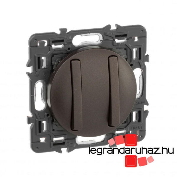 Céliane - kettős váltókapcsoló (106+6, 108) A csomag tartalma: Céliane csavarozható rögzítőperem Céliane mechanizmus Céliane burkolat A termékkép az összeszerelt szerelvényt ábrázolja, a termékeket részekre csomagolva külön cikkszámon számlázzuk és szállítjuk (rögzítőperem + szerelvény + burkolat) Kettős váltókapcsoló 10 AX – 230 V~ Rugós vezetékbekötéssel