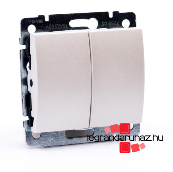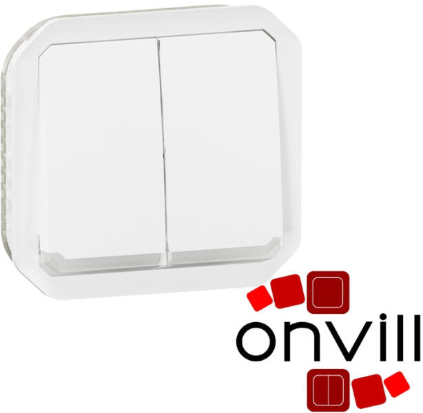 Plexo 55 - kettős (108-as) váltókapcsoló burkolattal Plexo 55 mechanizmus burkolattal Nem összeszerelt változat Kettős váltókapcsoló 10 AX - 250 V~ Rugós vezetékbekötés 230 V~-os lámpával Falon kívüli szereléshez kiemelődoboz, süllyesztett szereléshez keret szükséges Plexo 55 fehér Három különböző funkciót tesz lehetővé: Kettős váltókapcsoló Kettős váltóéri