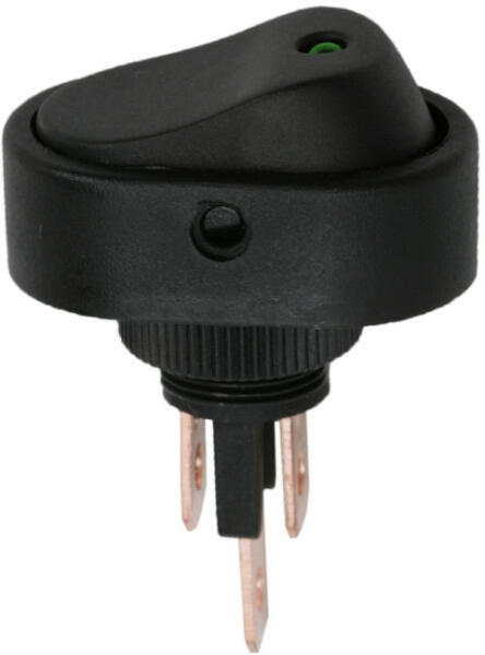 Billenő kapcsoló 1 áramkör 20 A - 12 V DC OFF - ON zöld LED-del Beépíthető fekete billenőkapcsoló leddel. Széles körben használt, ideális lehet autóban, elektromos eszközök kezelőpanelján. A visszajelző lednek köszönhetően könnyen megállapítható a kapcsoló státusza. 20 A / 12 V DC ON - OFF Zöld LED-del Kapcsoló típusa:SPSTÁramerősség:20 A / 12 V DCBeépítési m