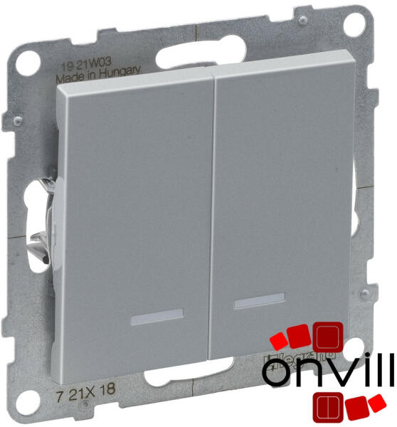 Kettős váltókapcsoló jelzőfénnyel IP44 10 AX - 250 V~ Rugós vezetékbekötés Alacsony fogyasztású (2 x 0,125 mA) LED lámpákkal szállítva (2x764526) Alumínium Suno - IP44-es kettős váltókapcsoló (108), kettős alternatív kapcsoló, jelzőfénnyel, burkolattal Mechanizmusok fém süllyesztőperemmel és billentyűvel együtt szállítva Rögzítés csavarok vagy körmök segíts
