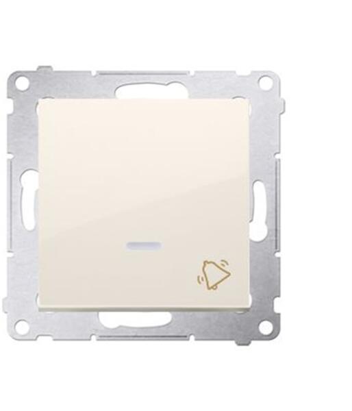 Nyomógombos kapcsoló "csengő" LED orientációs háttérvilágítással (modul) 10AX 250V, gyorscsatlakozó, bézs színű Specifikáció: Sorozat: Simon 54 prémium Termék neve: "csengő" kapcsológomb LED-es háttérvilágítással Színe: 1: Bézs Típus: modul Maximális áram: 10 A Feszültség: 250 V AC A csatlakozók típusa IP védelem: IP20/IP44 Használjon DU kerettömítést az IP44