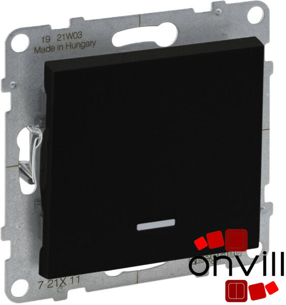 Egypólusú kapcsoló jelzőfénnyel IP44 10 AX - 250 V~ Alacsony fogyasztású (0,125 mA) LED lámpával szállítva (764526) Fekete Suno - IP44-es egypólusú (101) kapcsoló, jelzőfénnyel, burkolattal Mechanizmusok fém süllyesztőperemmel és billentyűvel együtt szállítva Rögzítés csavarok vagy körmök segítségével A jelzőfény fehéren világít Flow pack csomagolás: a biztons