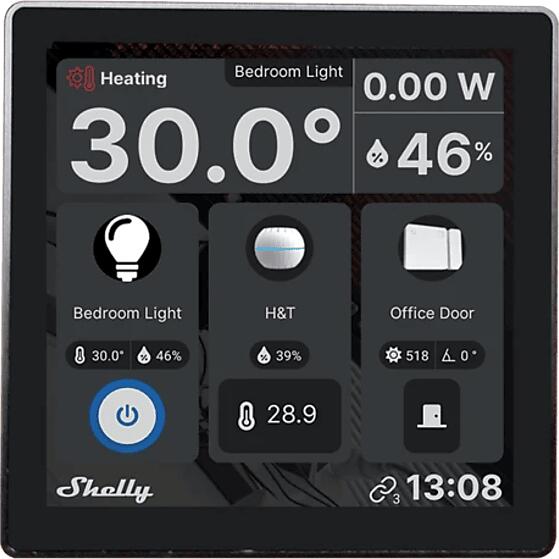 Miért A Shelly Wall Display? Navigáljon okos otthonában: Egyszerűsített vezérlés egy helyről! A Shelly Wall Display egy kifinomult 4 hüvelykes kijelző, amely intuitív vezérlést és zökkenőmentes felügyeletet biztosít okosotthonának minden szegletében. Mondjon búcsút a hétköznapi kapcsolóknak - mostantól egyetlen érintéssel könnyedén be- és kikapcsolhatja eszközeit. L