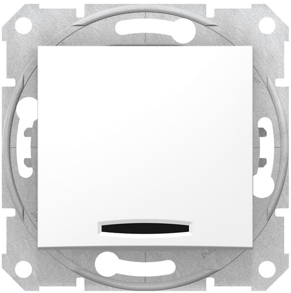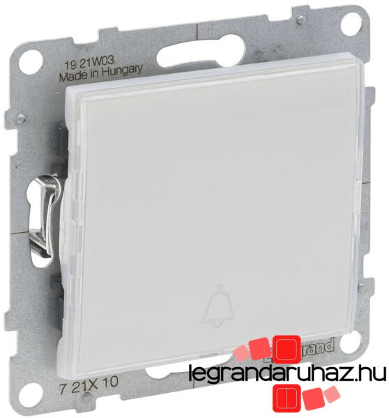 Egypólusú nyomó címketartóval, jelzőfénnyel IP44 6 A - 250 V~ Rugós vezetékbekötéssel Alacsony fogyasztású (0,125 mA) LED lámpával szállítva (764526) Átlátszó címketartó három különböző betétlappal (sima, csengőjellel, lámpajellel) Fehér Suno - IP44-es egypólusú nyomó, jelzőfénnyel, burkolattal Mechanizmusok fém süllyesztőperemmel és billentyűvel együtt sz