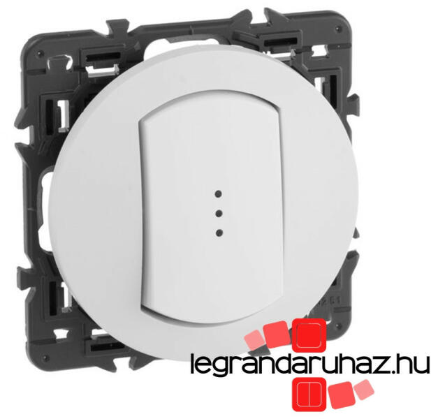 Céliane - váltókapcsoló (106) jelzőfénnyel A csomag tartalma: Céliane csavarozható rögzítőperem Céliane mechanizmus Céliane burkolat Céliane jelzőfény A termékkép az összeszerelt szerelvényt ábrázolja, a termékeket részekre csomagolva külön cikkszámon számlázzuk és szállítjuk (szerelvény + burkolat + led) Váltókapcsoló 10 AX – 230 V~ Rugós vezetékbekötésse