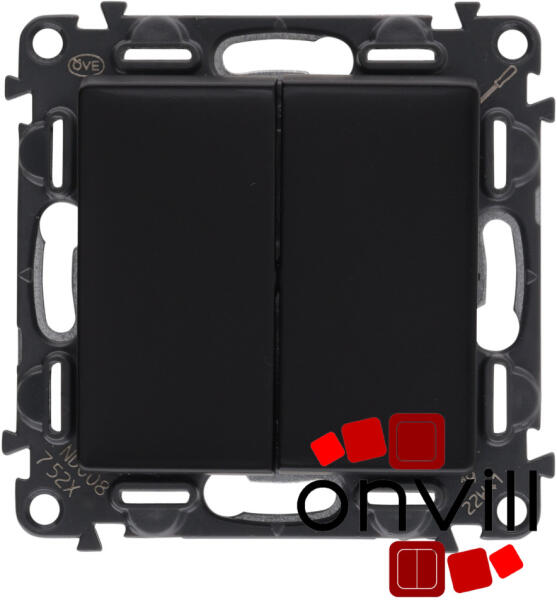 Valena Life - dupla váltóérintkezős nyomó burkolattal Valena In'Matic szerelvény műanyag borítású fém süllyesztőperemmel Valena Life kerettel szerelhető fel Burkolattal Festékv édő burkolattal ellátva Kettős váltóérintkezős nyomó 6 A - 250 V~ Rugós vezetékbekötés Valena Life fekete Csatlakozás: Rugós vezetékbekötés Kábel csupaszítási hossz: 13 mm Vezetékméret: