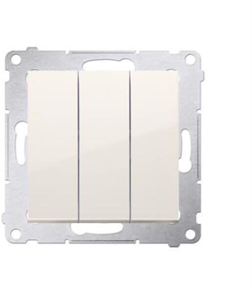 Háromszoros kapcsoló (modul) 10AX 250V, gyorscsatlakozó, bézs színű Specifikáció: Sorozat: Simon 54 prémium Termék neve: Hármas kapcsoló (3 x 1 pólusú - bistabil) Szín: 1: Bézs Típus: modul Maximális áram: 10 A Feszültség: 250 V AC A csatlakozók típusa IP védelem: IP20/IP44 Használjon DU kerettömítést az IP44-es ellenállási osztály eléréséhez... Anyag típusa: Hal