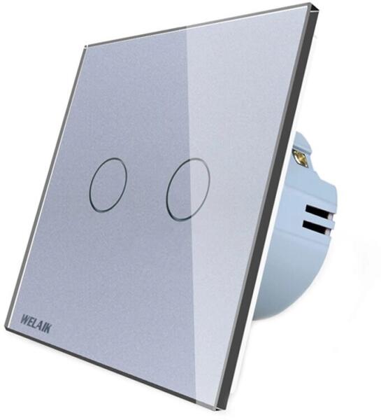 Welaik A1921CS dupla érintéskapcsoló, üveglap, szürke A Welaik kapcsolók kiváló minőségű termékek, nagy tartóssággal. Intuitív, modern kialakításuk lehetővé teszi az egyszerű telepítést. A Welaik termékek ROHS, CE és egyéb külföldön kiállított harmadik felek tanúsítványaival összhangban működnek. Azon kevés érintőmodulok egyike, amelyek 1 W-tól 1000 W-ig mű