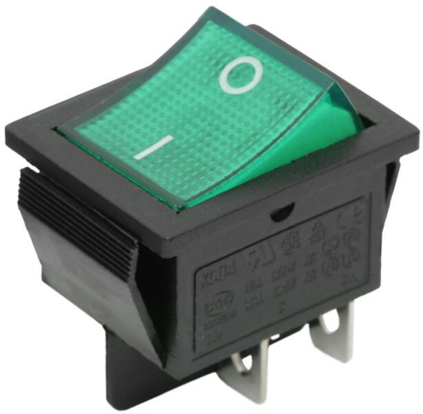 Billenő kapcsoló 2 áramkör 16 A - 250 V OFF - ON zöld világítással Széles körben elterjed, ismert billenőkapcsoló zöld világítással. Beépíthető elektromos eszközök, műszaki termékek kezelőfelületére. Bekapcsolt állapota távolról ellenőrizhető a zöld világításnak köszönhetően. 2 áramkör 16 A - 250 V OFF - ON I-O jelzéssel Zöld világítással Kapcsoló típ