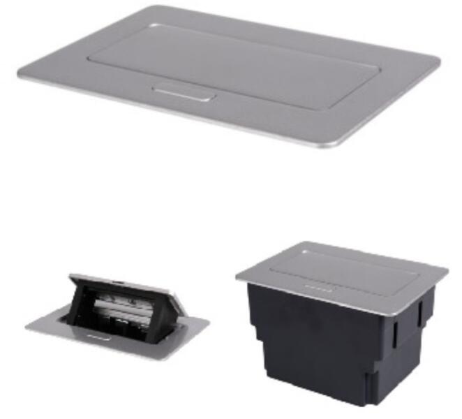 KANLUX BIURO+ 04-0052-100 Soft POP-UP fém asztali doboz, 2xM45, 95x123x170mm, ezüst (28313) Műszaki adatok: Névleges feszültség: 250V/AC Névleges frekvencia: 50Hz Névleges áram: 16A Modulok száma: 4 Beszerelés helye: szerelés: padlóba süllyesztett IP védettség: IP20 Áramütés elleni védelmi osztály: I Méret. 95 x 123 x 170 mm Súly: 520g Szín: ezüst